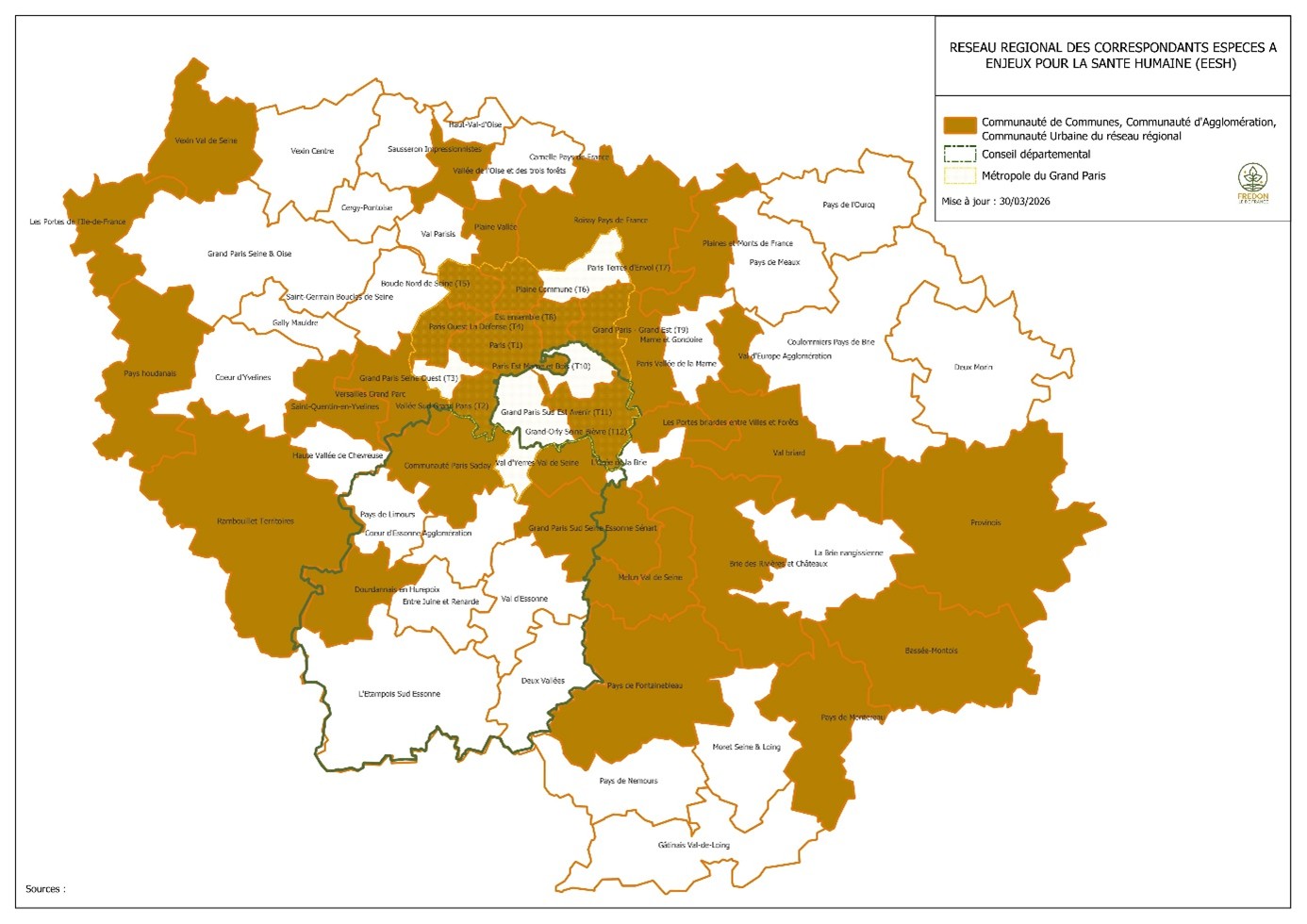 Dans ce cadre, les intercommunalités et les départements franciliens sont invités à désigner deux correspondants EESH qui ont pour rôle de relayer sur leur territoire des informations de prévention, de surveillance et de gestion des espèces qui peuvent être impactantes pour la santé humaine.